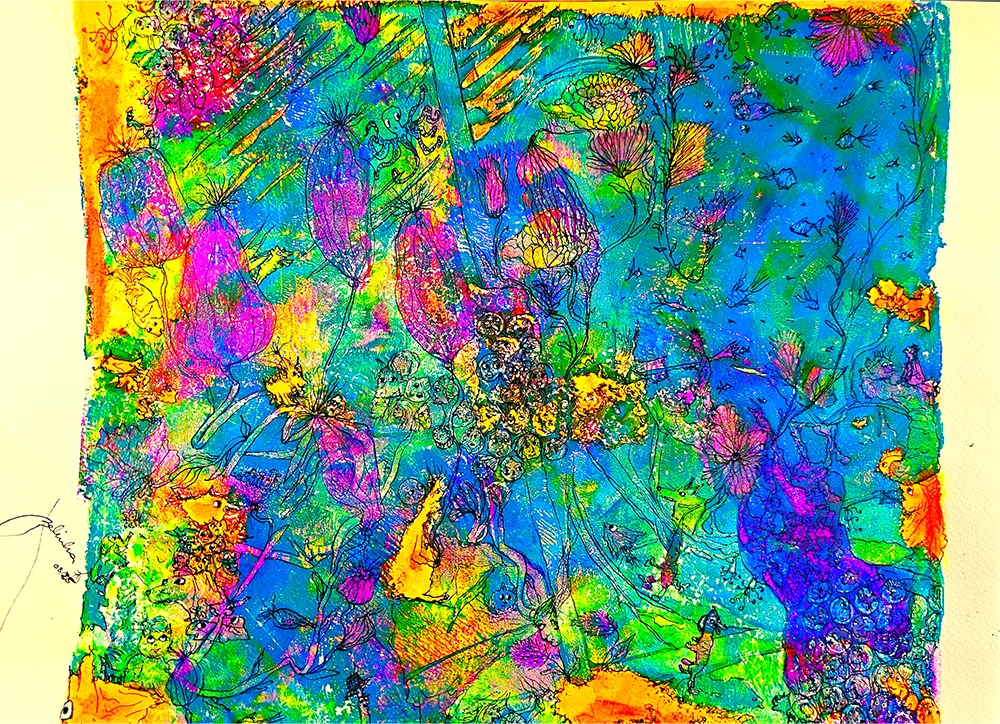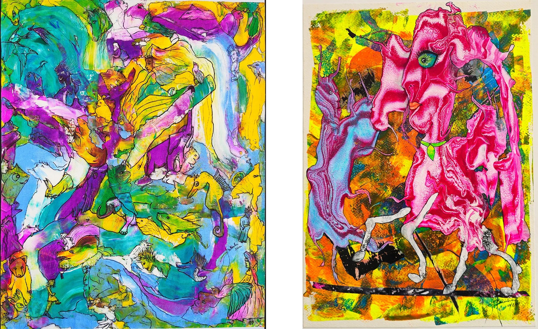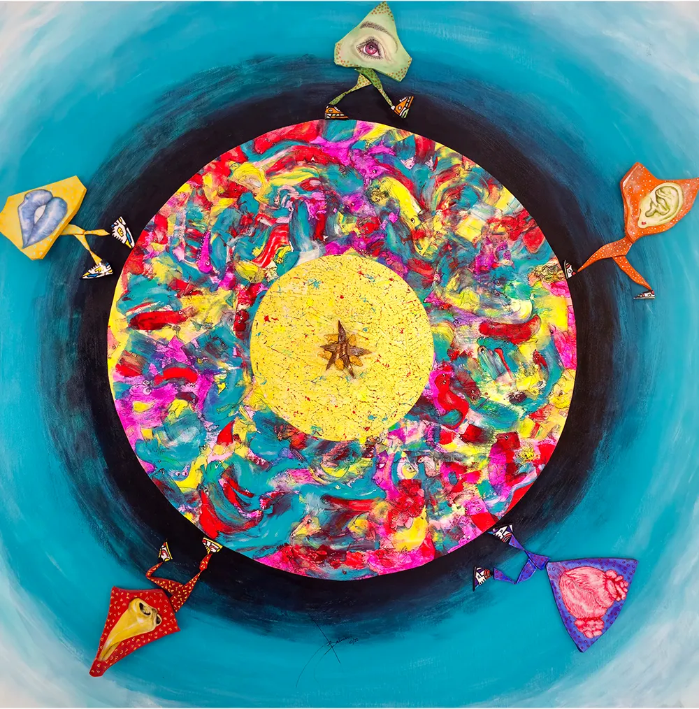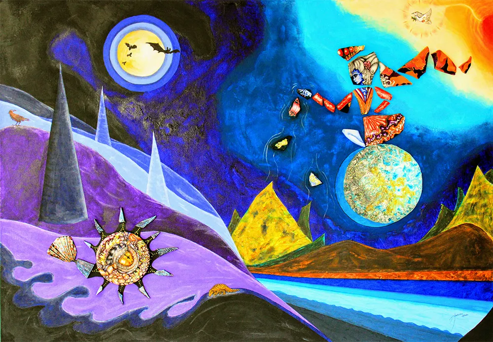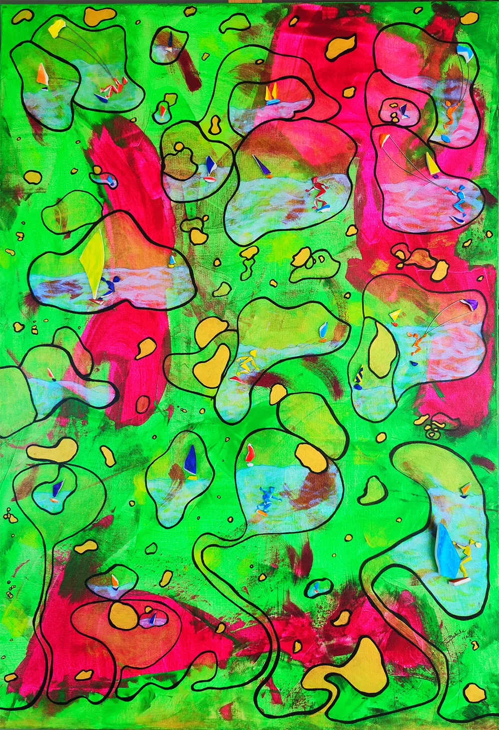 A pivotal transformation occurred in 2005 during her first art workshop in Brussels, marking the true beginning of her profound relationship with art. That experience, which she refers to as “The Revelation,” redefined her relationship with art — not as a hobby or pastime, but as a vital, emotional necessity. From then on, she embraced a self-taught, intuitive practice rooted in experimentation, curiosity, and personal resonance. Her creative process, free from formal schooling, allowed her to explore diverse mediums and techniques freely, ultimately leading to a unique visual language that straddles the boundaries between surrealism, abstraction, and pop art.